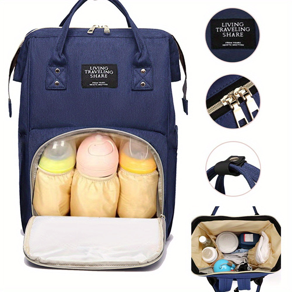 Blue Polyester Diaper Bag with Multiple Compartments and Bottle Holder