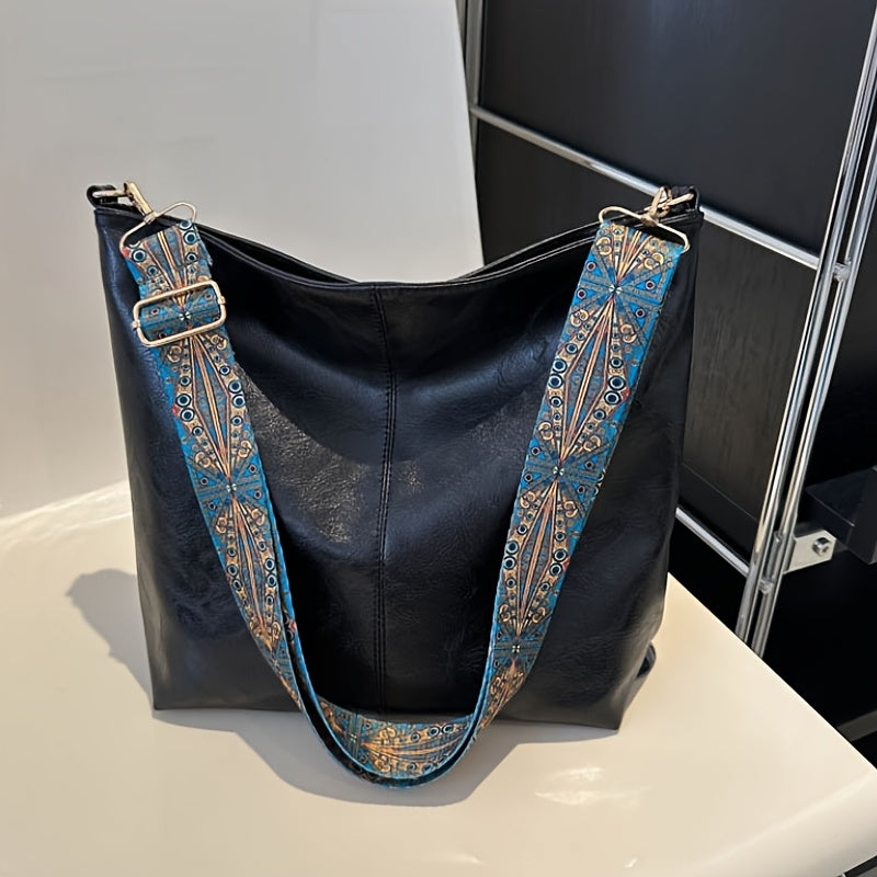 Women's Boho Chic Shoulder Bag Large Capacity Vintage Wide Strap Crossbody Tote for Casual Use