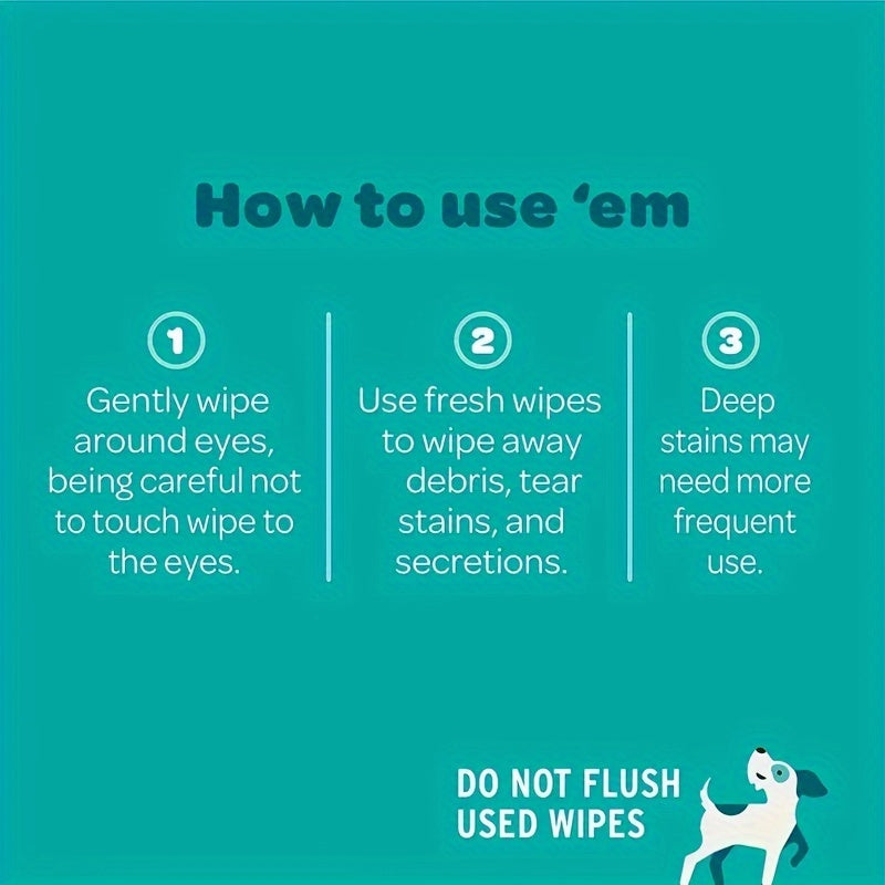 Pet Eye Wipes for Cats and Dogs 120 Count Tear Stain Remover Facial Cleanser