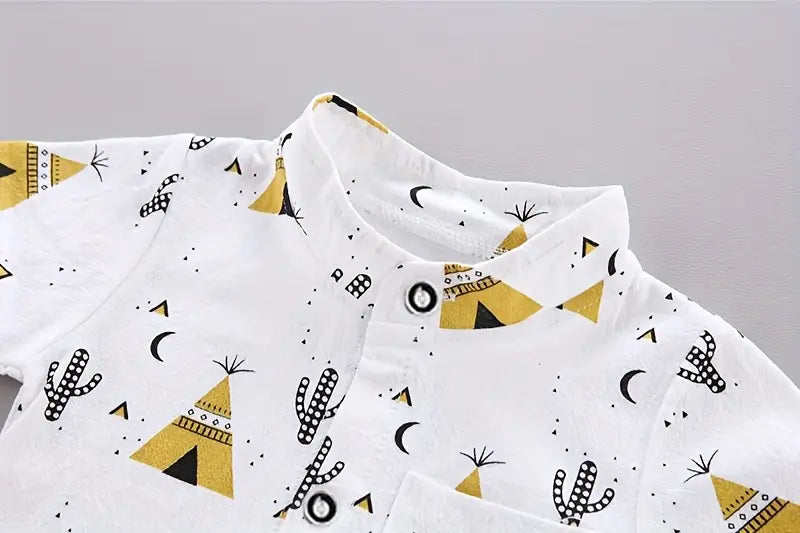 Boys Casual Set Short Sleeve Shirt and Shorts Pyramid Print Spring Summer 0-3 Years