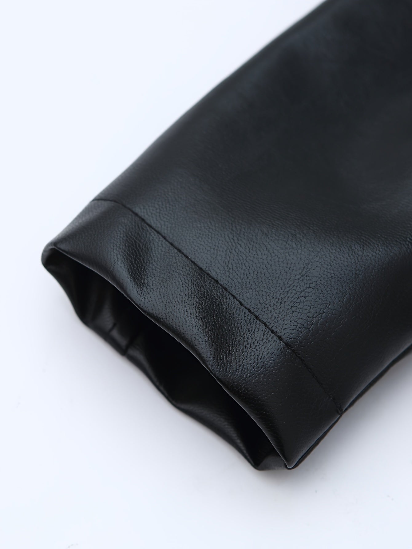 Boys Biker Jacket Black Polyester Casual Spring Fall Button Pockets