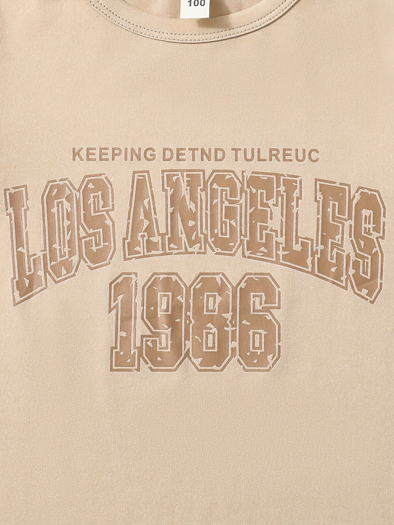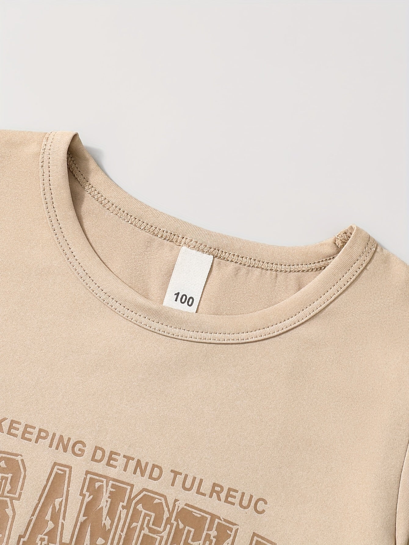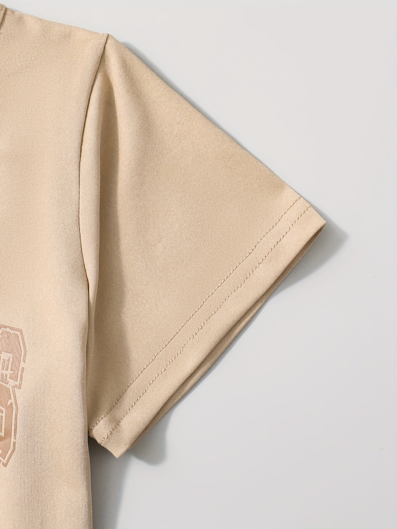 Boys Summer Set Casual Letter Print T-Shirt and Shorts with Pockets Polyester Blend