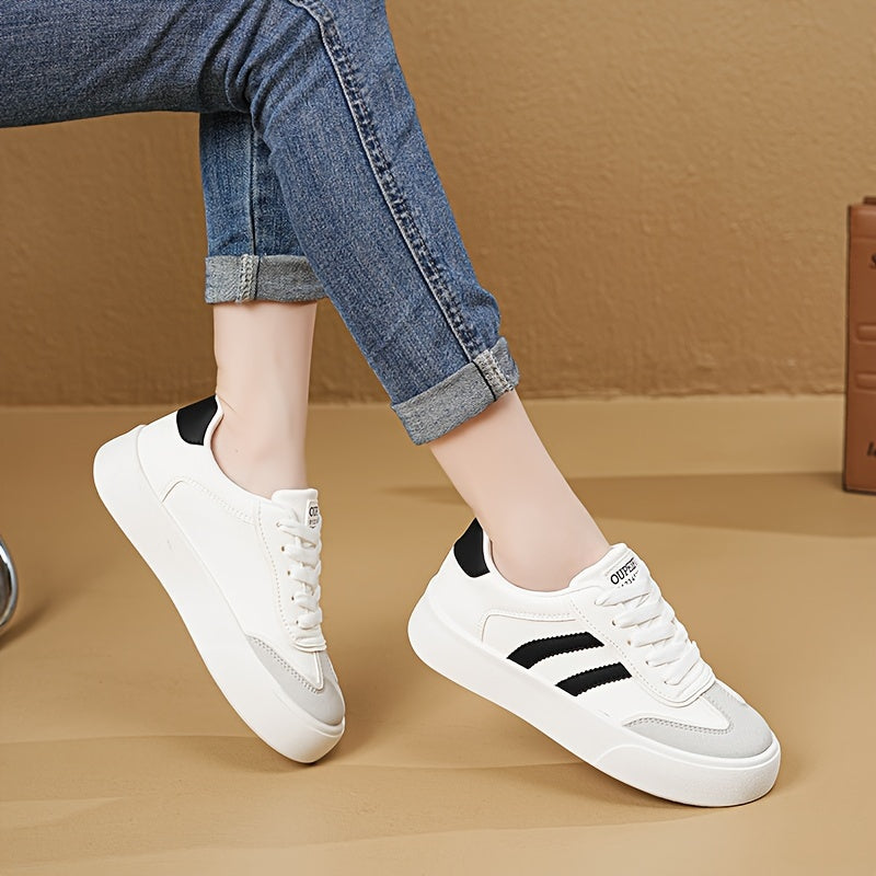 Women's Breathable Lace-Up Sneakers with Stripes and Cap Toe