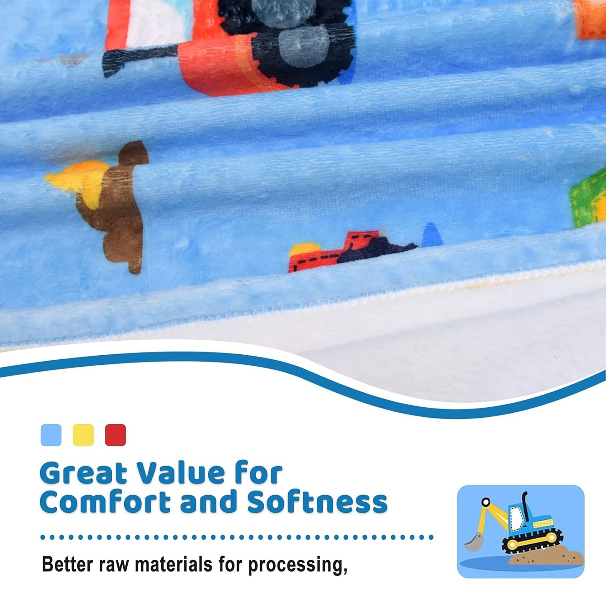 Baby Boys and Girls Lightweight Flannel Velvet Blue Truck Car Blanket 40x50 Inches