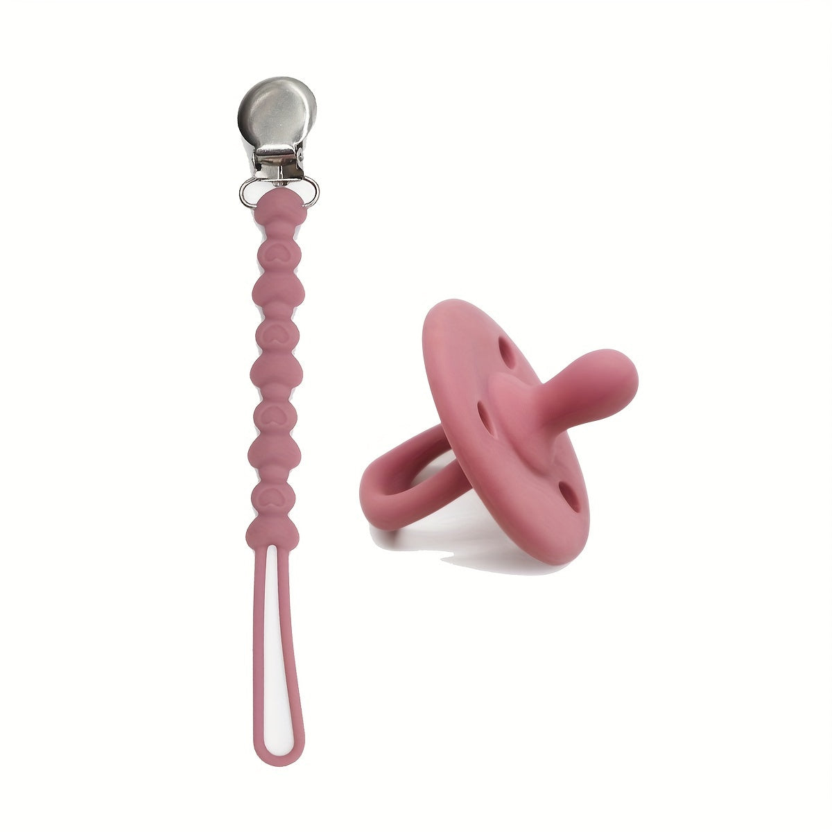 Baby Silicone Pacifiers Bundle of 2 with Pacifier Chains Food Grade Safe for Newborns