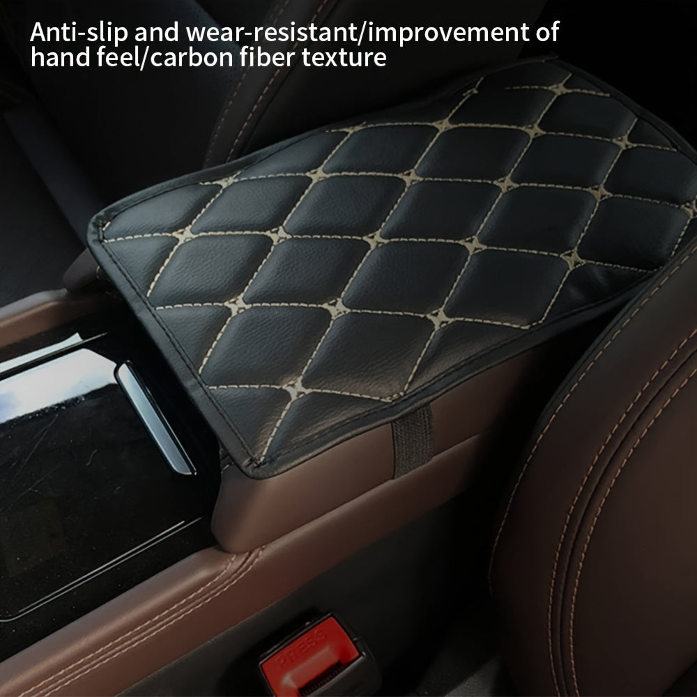 Car Armrest Cushion Leather Diamond Stitching Brown Center Console Cover Protector