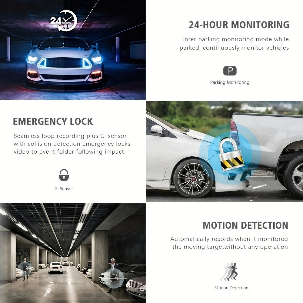 Car Dash Cam Dual Lens 1080P Front 720P Inside Night Vision Black