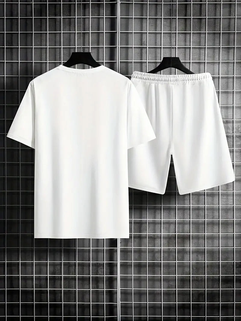 Men's Casual 2-Piece Pajama Set with Los Angeles Print Short Sleeve T-Shirt and Knee-Length Shorts
