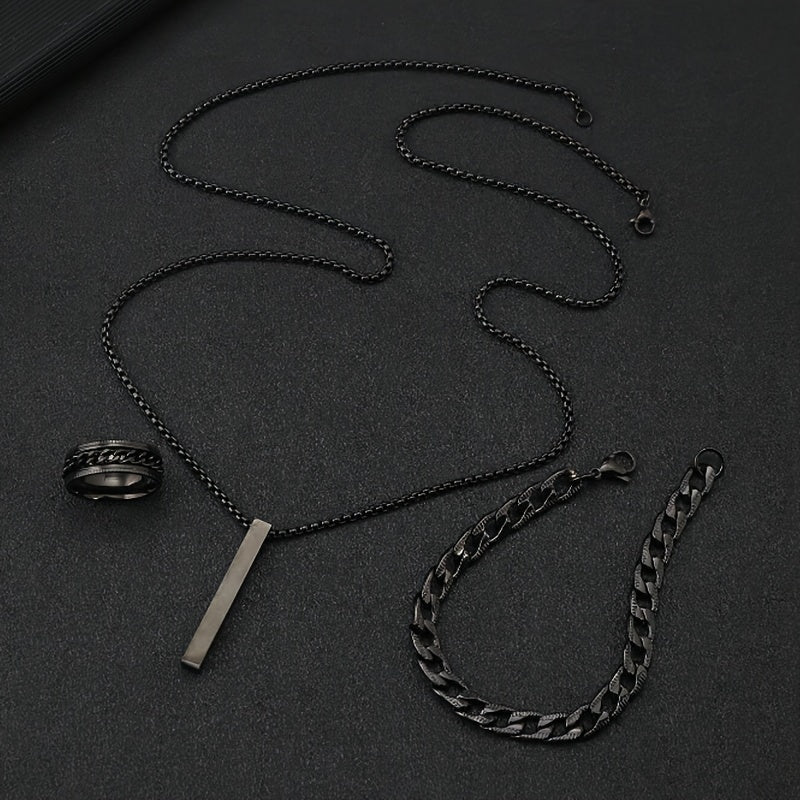 Casual Hip Hop Men's Jewelry Set Stainless Steel Black Geometric Pendant Necklace Bracelet