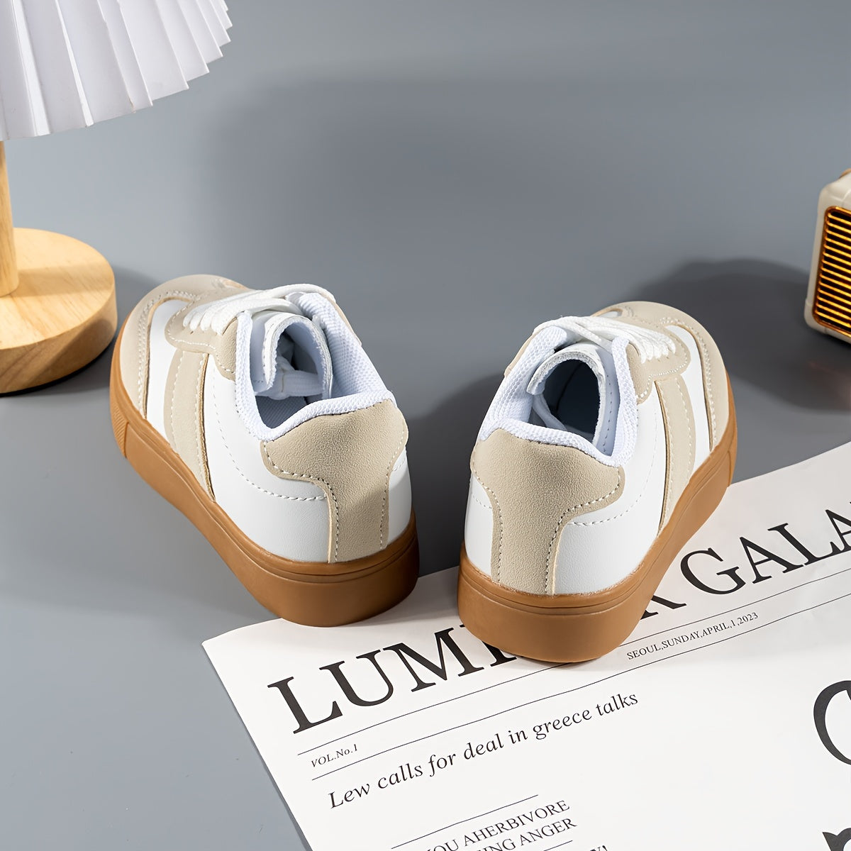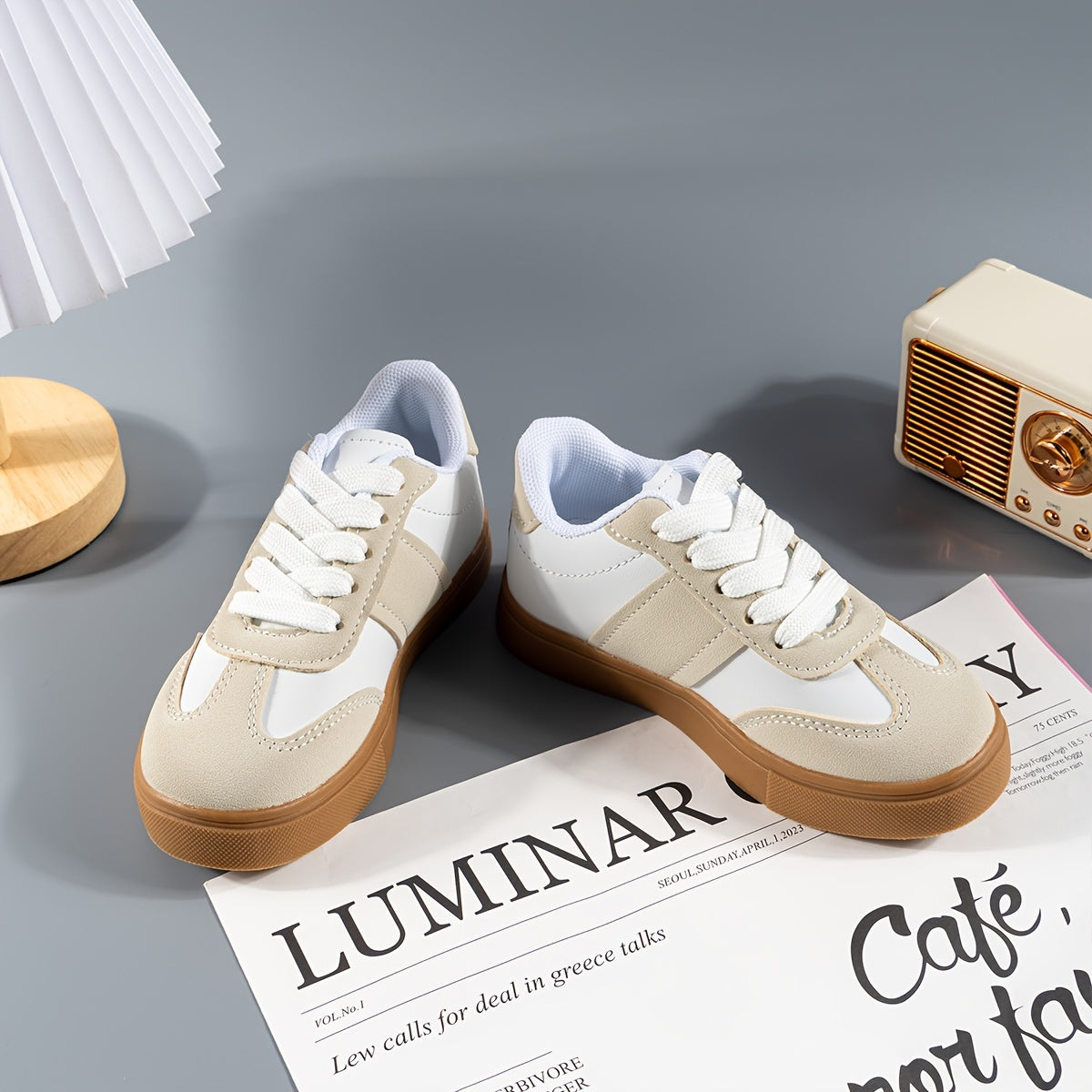 Kids Boys Girls Casual Low Top Lace-Up Sneakers with Stripes and Round Toe