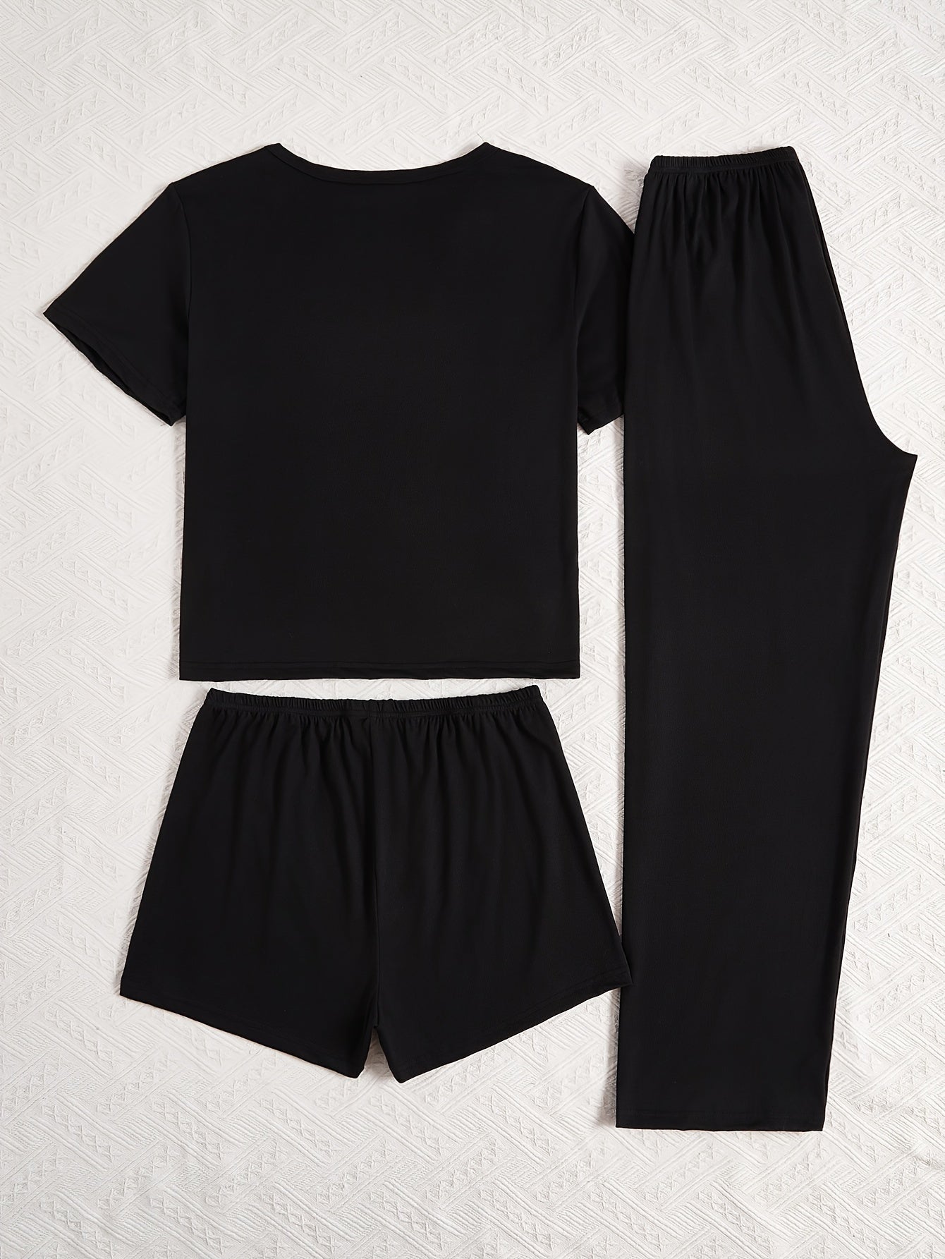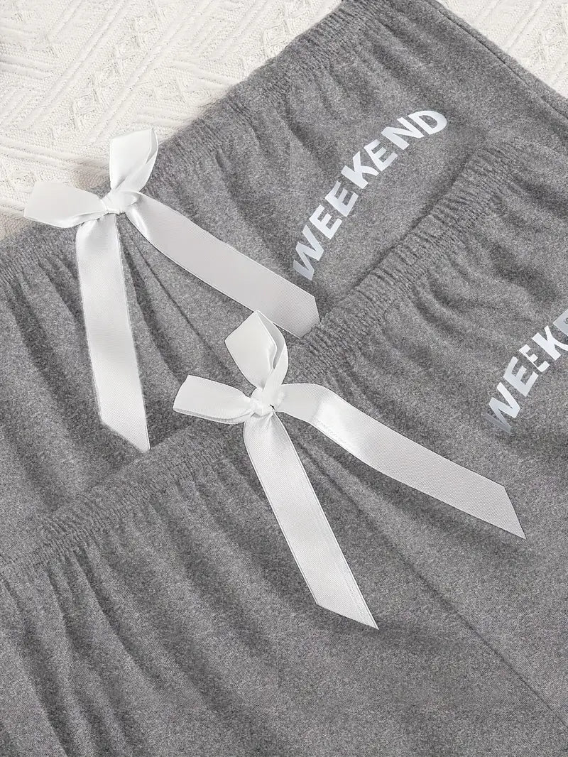 Women's Letter Print Casual Pajama Set Short Sleeve Top Shorts Pants All-Season