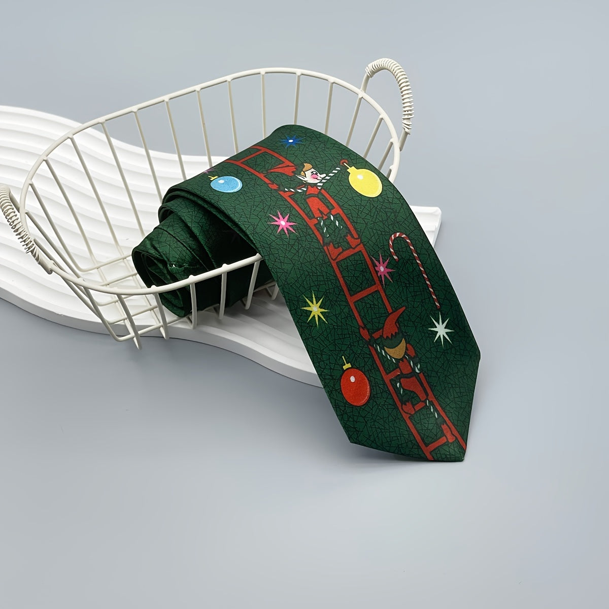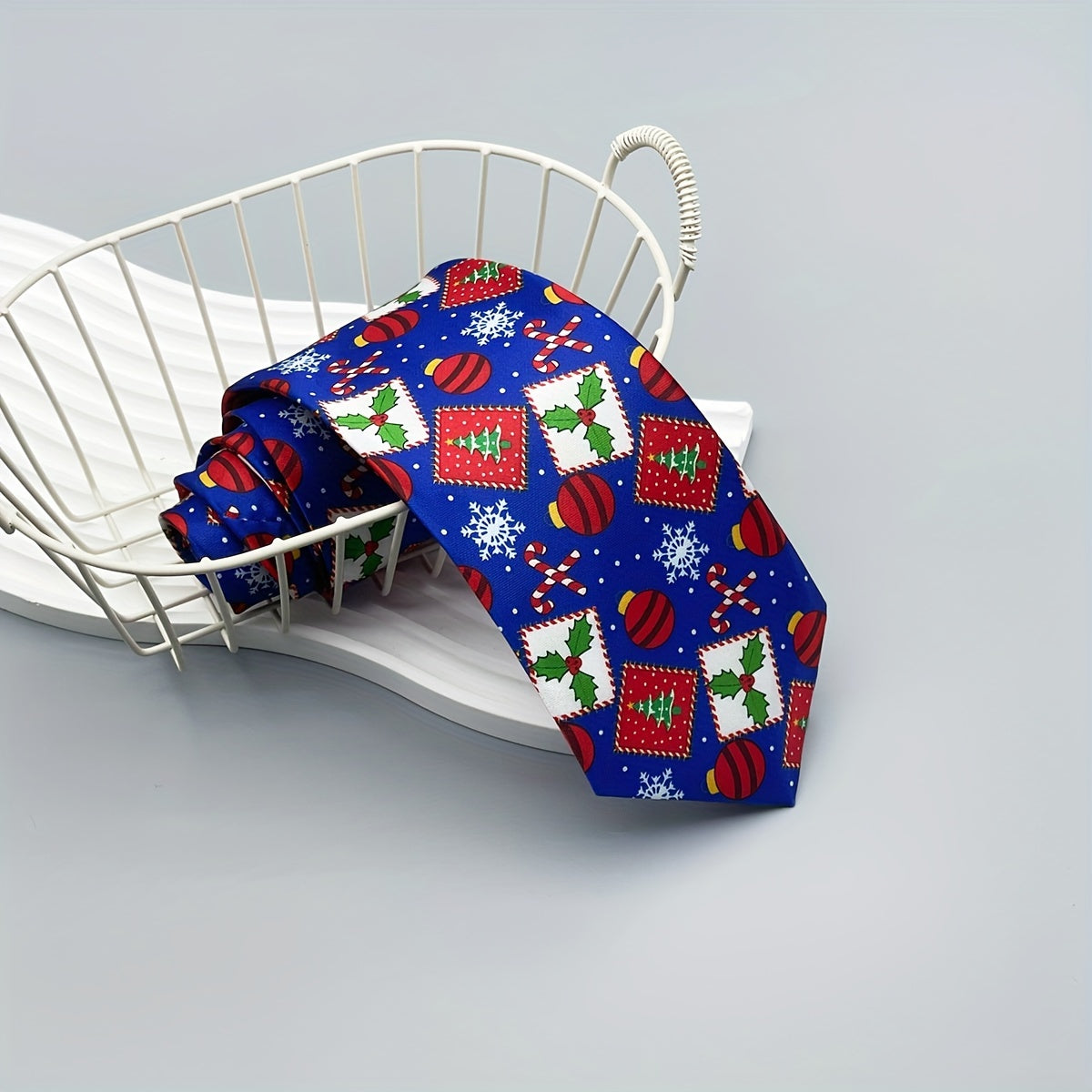 Men's Christmas Tie Woven Polyester with Santa Snowman and Tree Designs