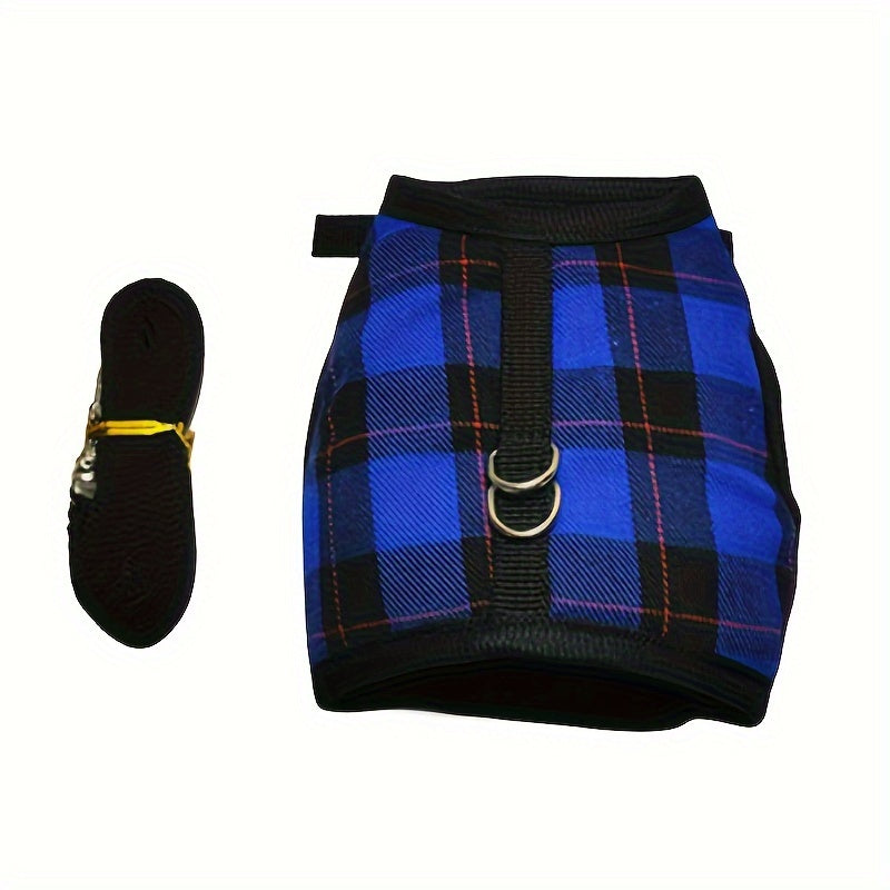 Checkered Blue and Red Hamster Harness and Leash Set with Bell Adjustable Breathable