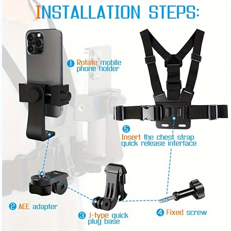 Mobile Phone Chest Mount for VLOG and POV Filming Adjustable Black Nylon