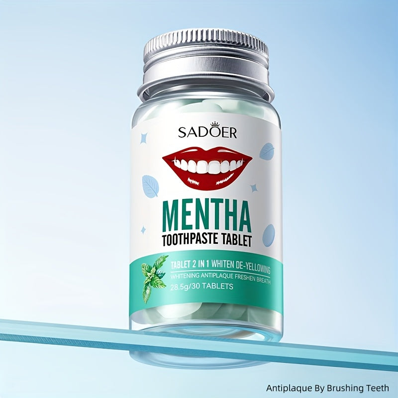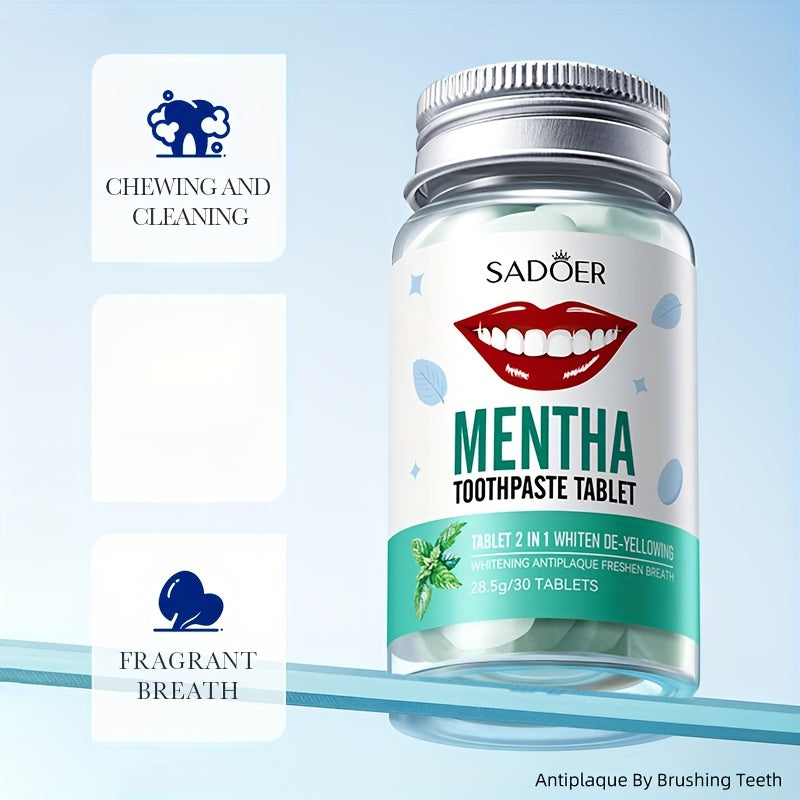 Chewable Peppermint Toothpaste Tablets 30 Count Travel Portable Natural Whitening