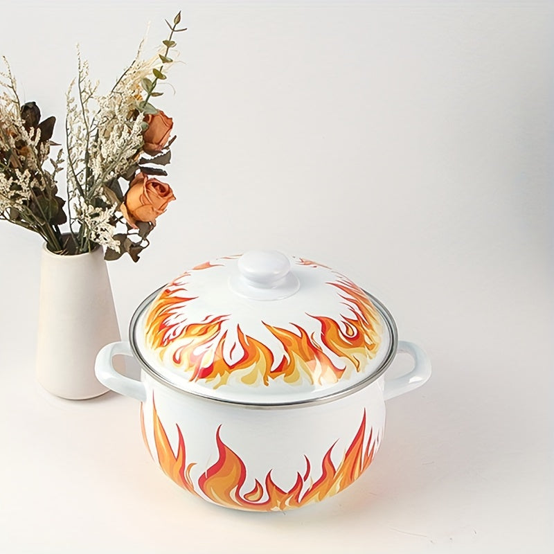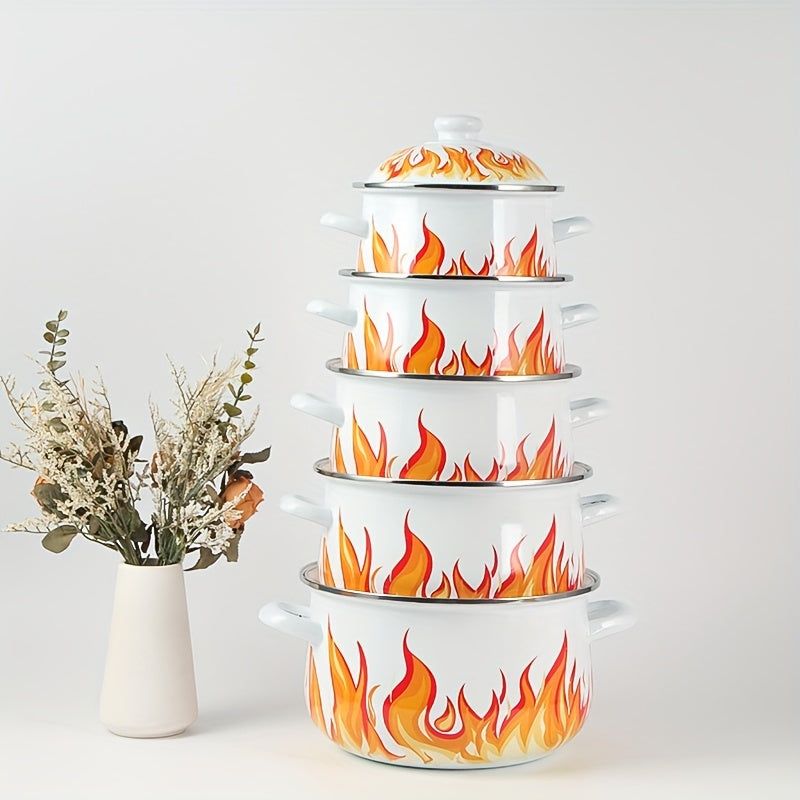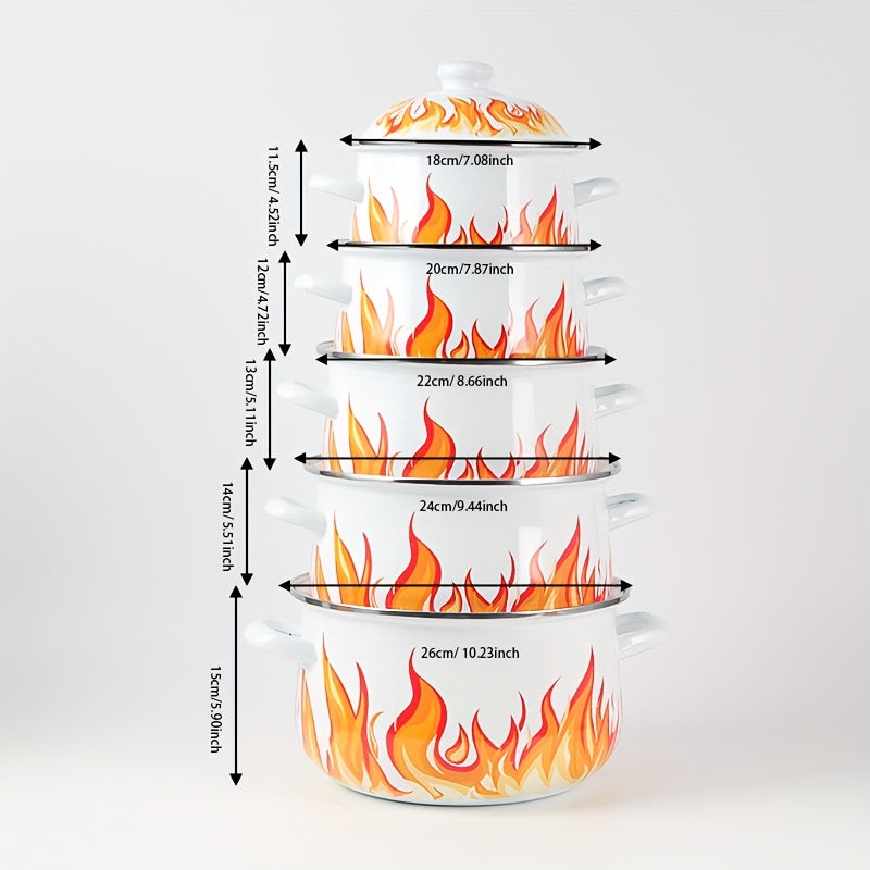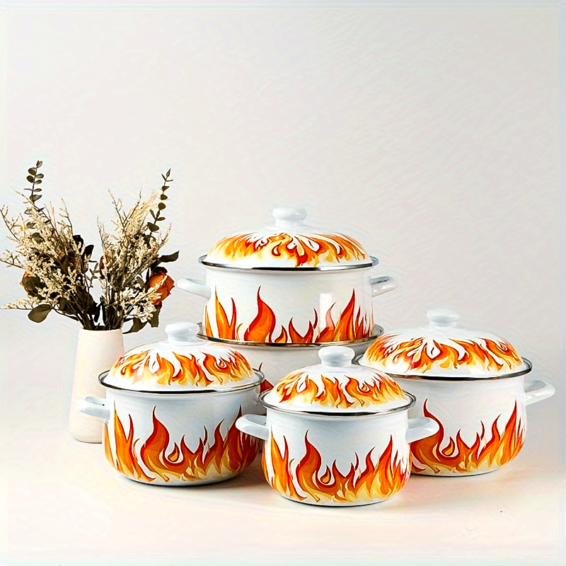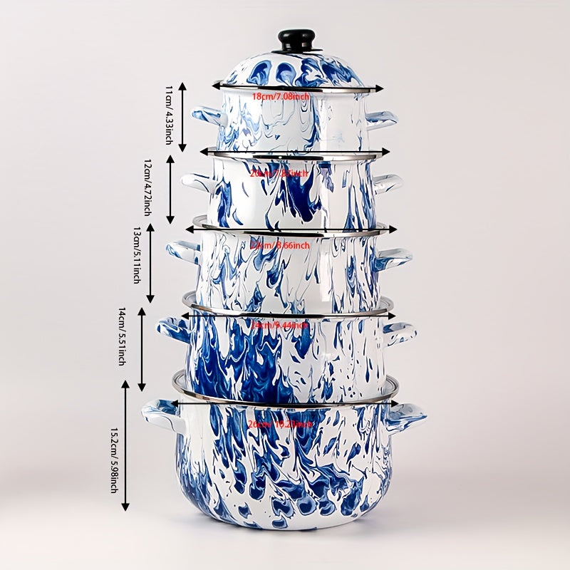 Enamel Cookware Set 5 Pieces Blue Floral Stackable Pots and Pans Kitchen