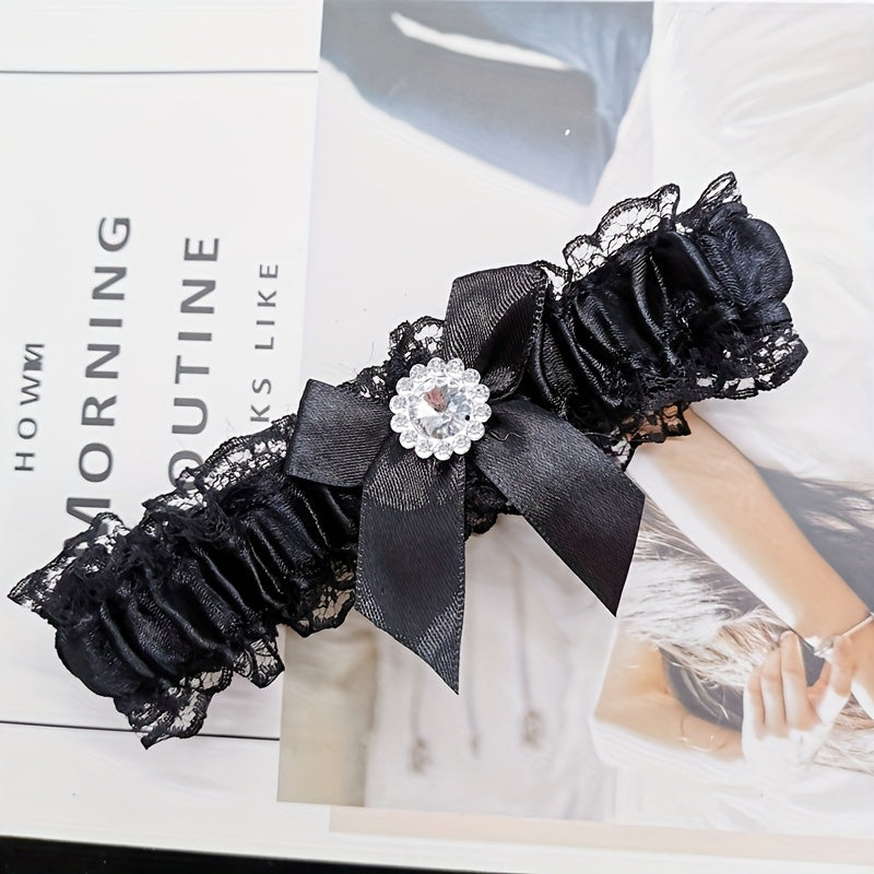 Lace Garter Belt with Mesh Bow for Wedding and Special Occasions