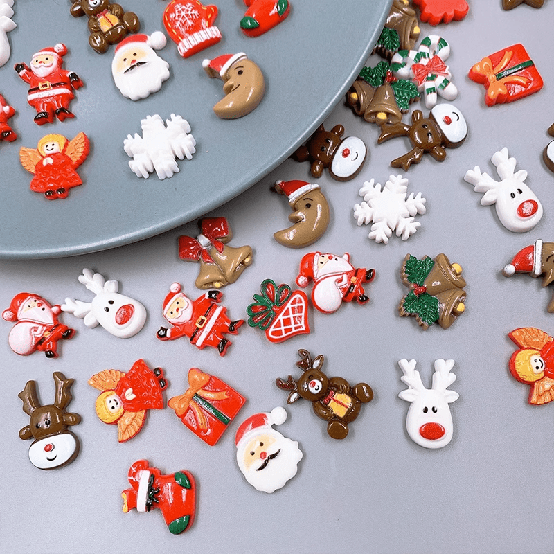 Christmas Resin Ornament Set with Santa Snowman Tree Bell Miniatures for Crafting and DIY Projects