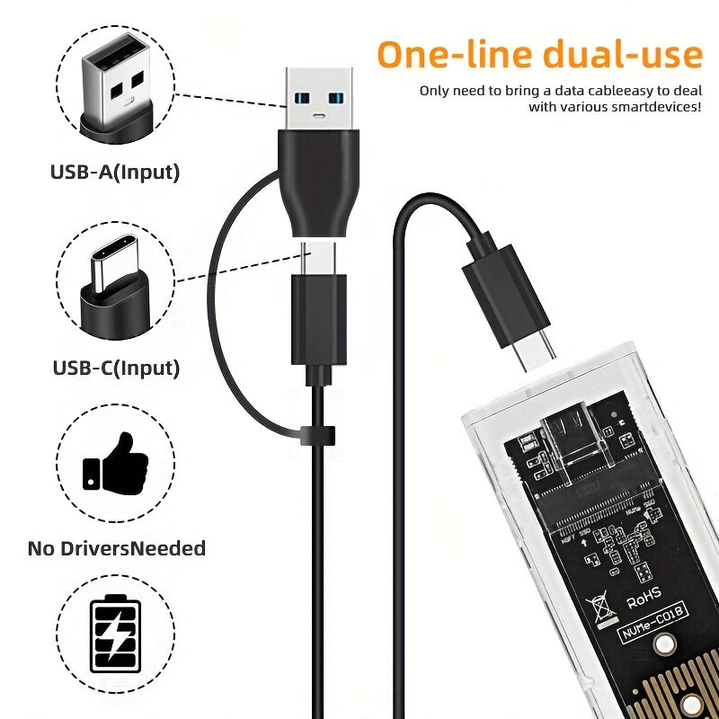 USB C NVMe SSD Enclosure 10Gbps Transparent M.2 NVME Hard Drive Case