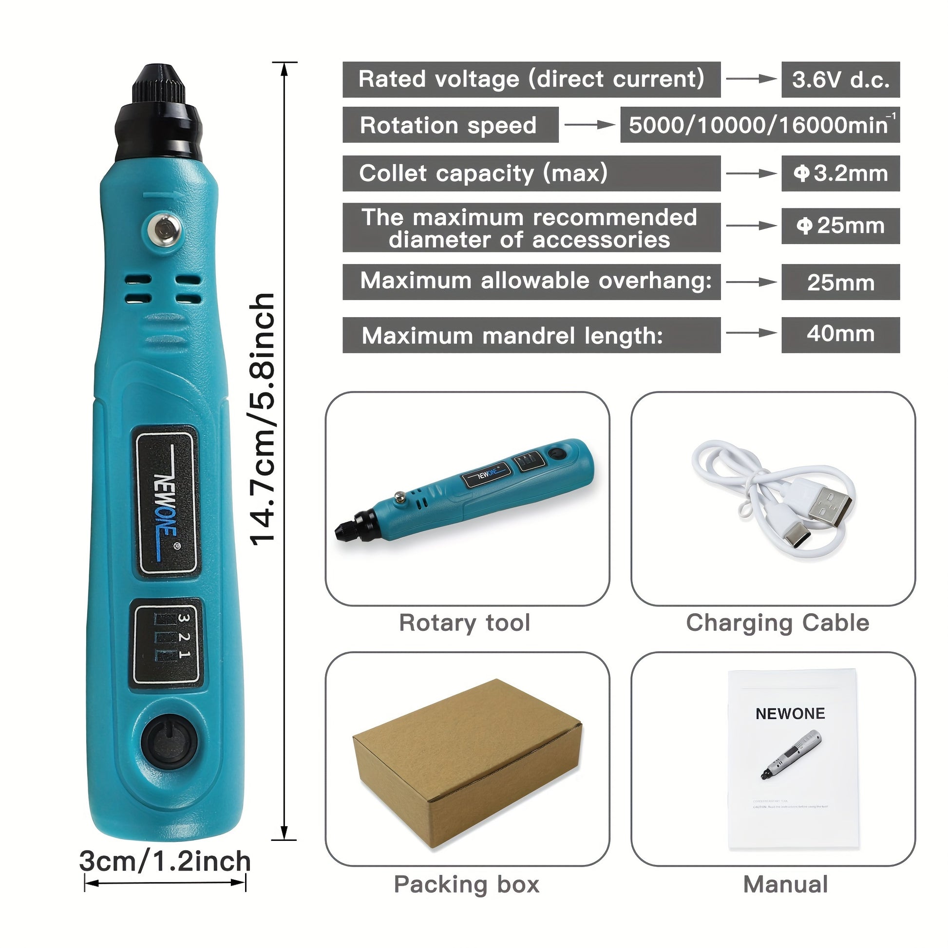 Cordless Rotary Tool 3.6V USB Rechargeable with 48 Accessories for Sanding Polishing Drilling and Engraving