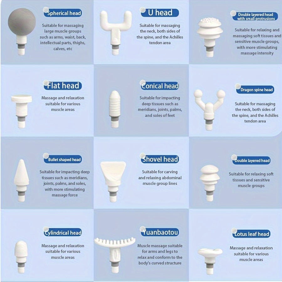 Handheld Massager with 12 Heads 8 Speeds Rechargeable USB Travel Home Use
