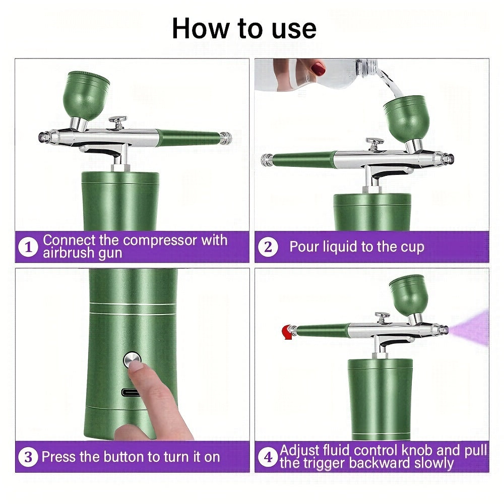 Compact Airbrush Kit with Rechargeable Battery, Mist Sprayer, Spray Gun for Nail Art Crafts and Tattoos