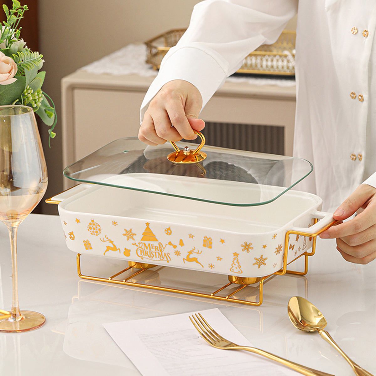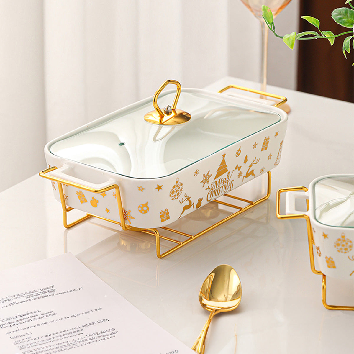 Festive Ceramic Serving Set with Christmas Soup and Griddle Pots and Iron Stand