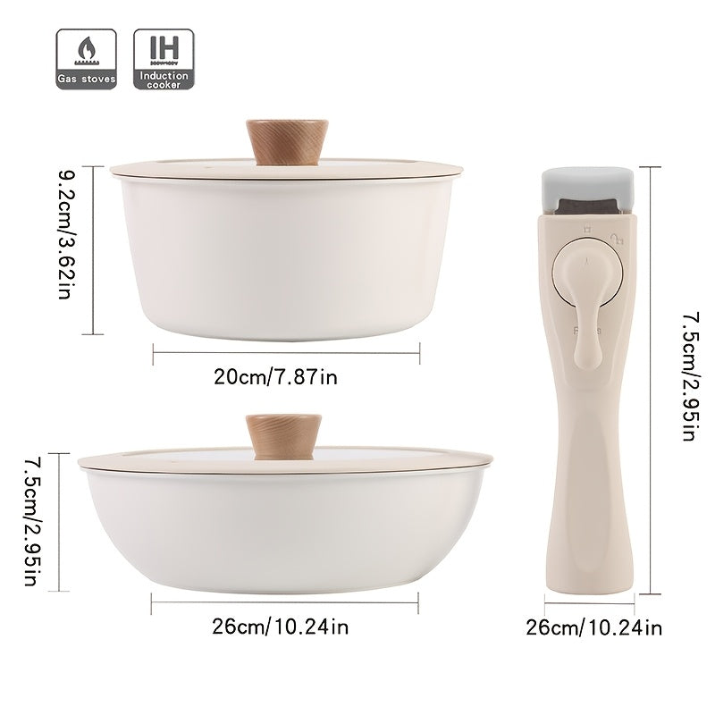 Non-Stick Aluminum Cookware Set with Removable Handle, Stackable, Glass Lids