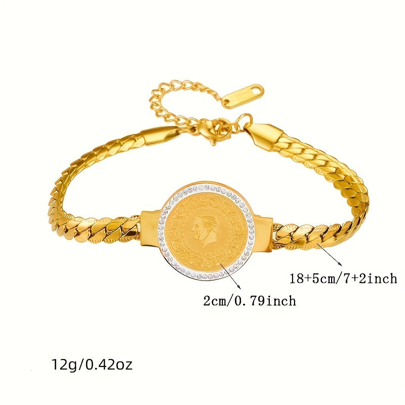 Stylish Gold-Tone Coin Bracelet with Rhinestones for Party and Banquet Outfits