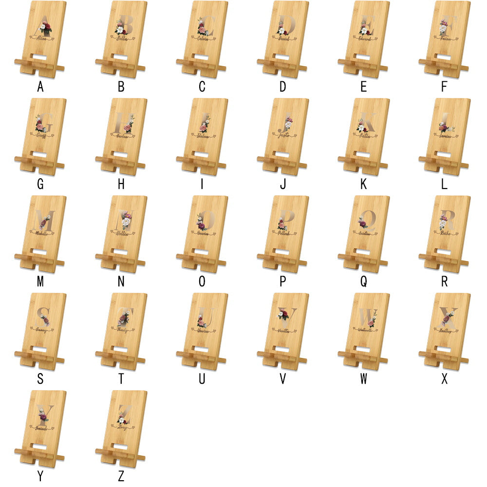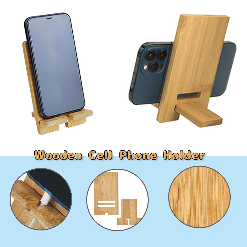 Customized Wooden Phone Stand with Detachable Desk Holder and Engraved Name in Light Brown Cork
