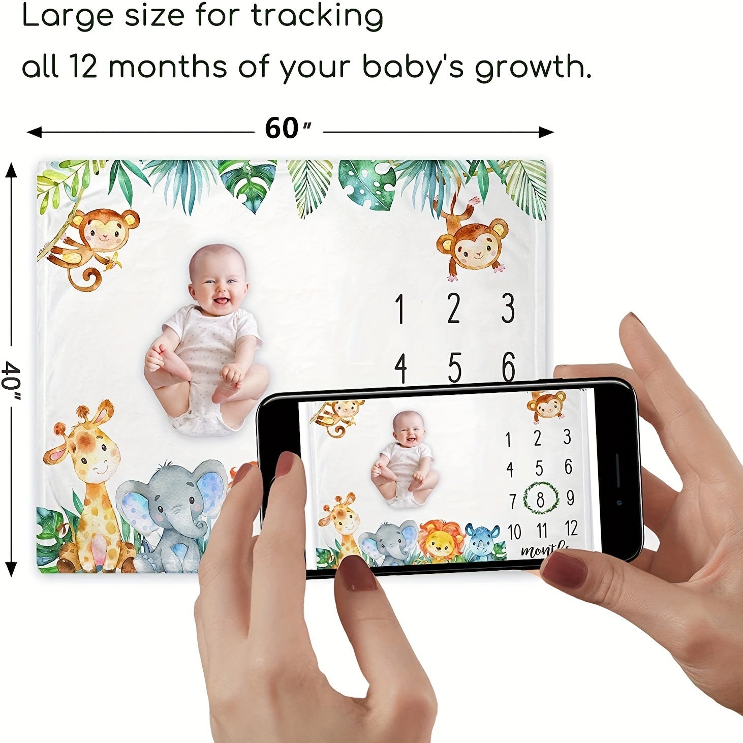 Baby Girl Milestone Blanket with Felt Frame Animals and Flower Design for Newborns