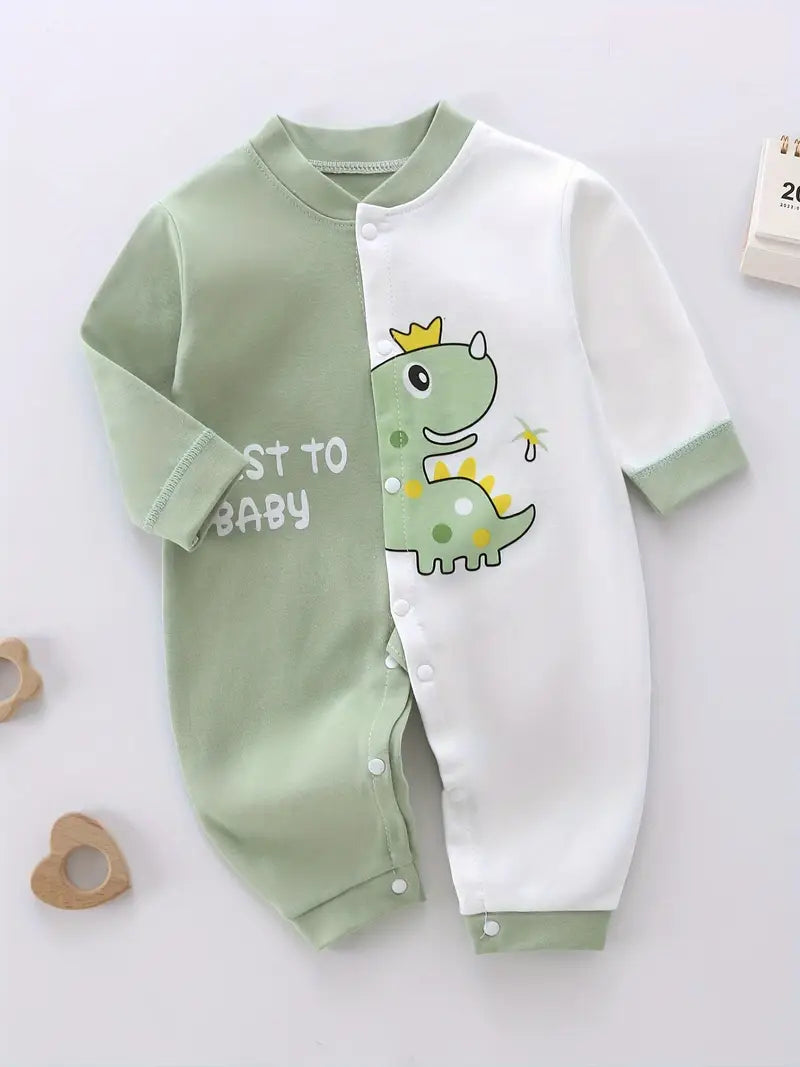 Baby Romper for 0-3 Years Old Cotton Dinosaur Cartoon Color Block Spring Fall Outdoor