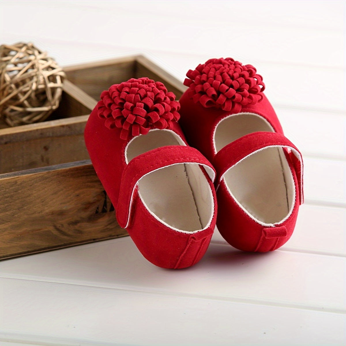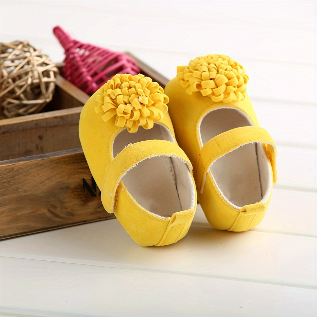 Baby Girl Shoes Mary Jane Floral Accents Non-Slip Breathable Fabric All-Season