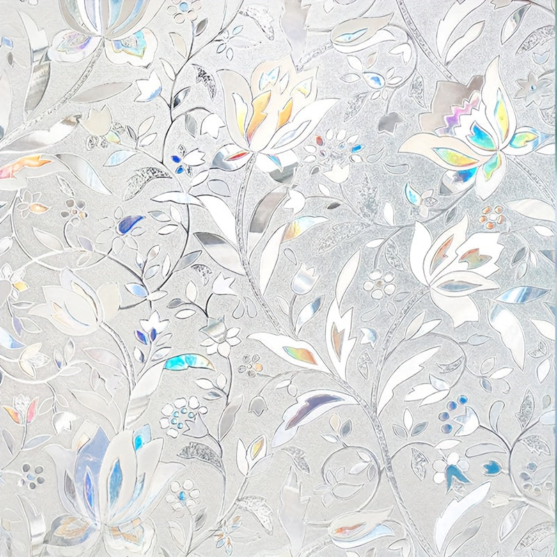 Sun Blocking Window Privacy Film with Stained Glass Design, Removable Static Cling