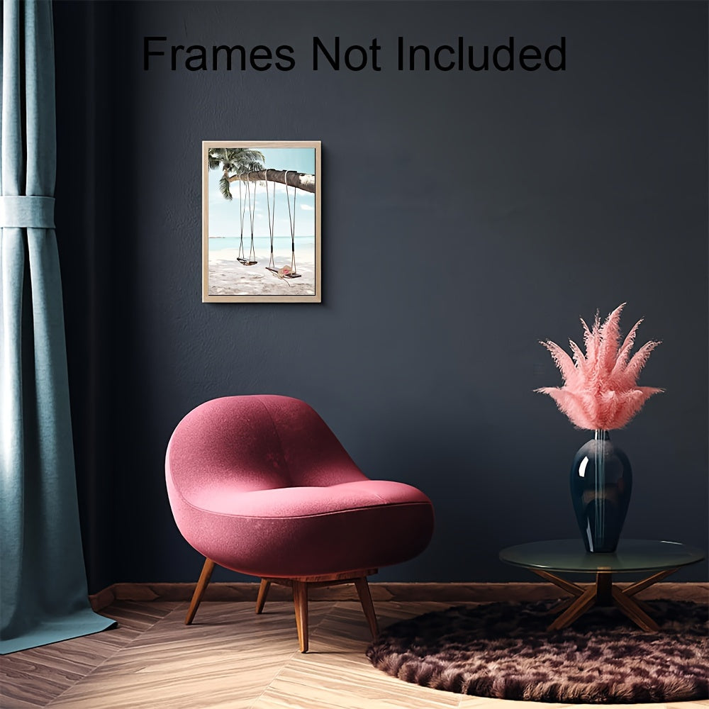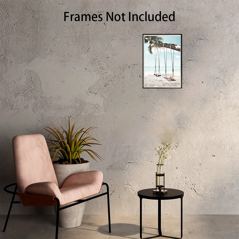 Beach Coast Canvas Wall Art Seaside Palm Tree Ocean Swing Blue Sky Sea View