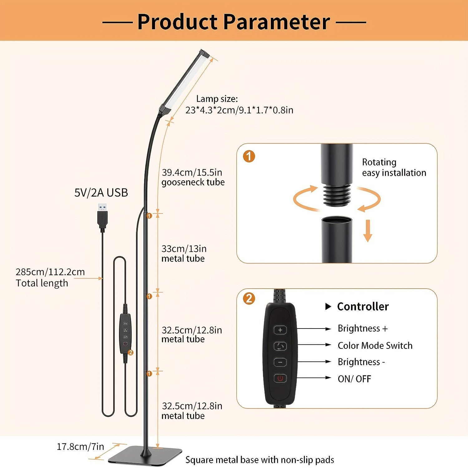 Dimmable LED Floor Lamp with 120 LEDs 3 Color Modes 10 Brightness Settings Flexible Gooseneck for Living Room Bedroom Office
