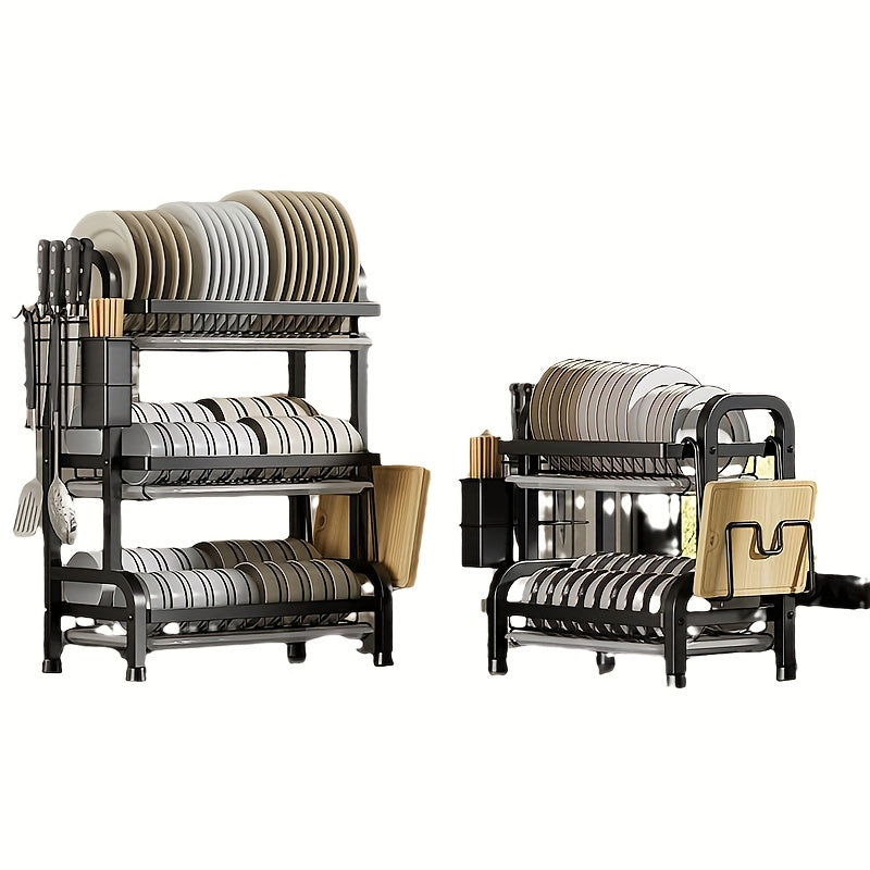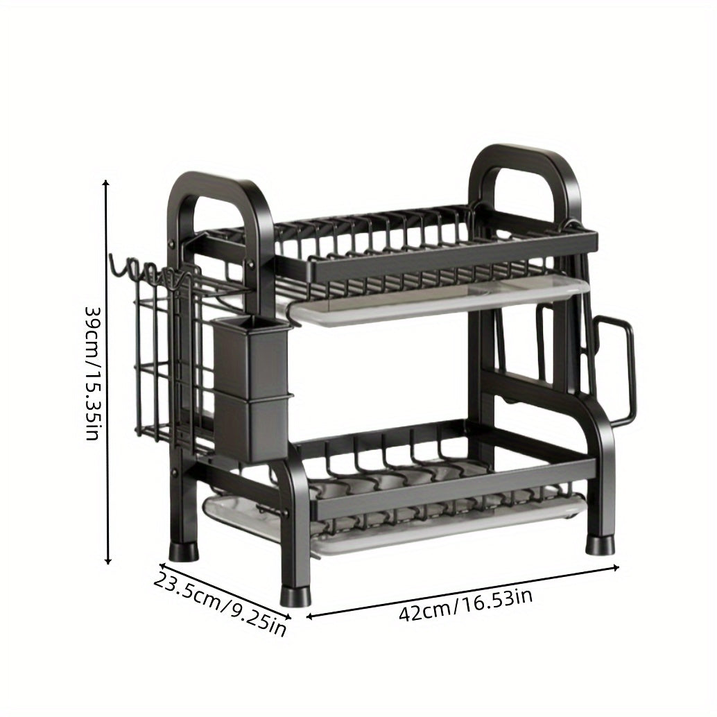 Double Layer Kitchen Organizer Dish Rack with Drainage Metal Storage Stand
