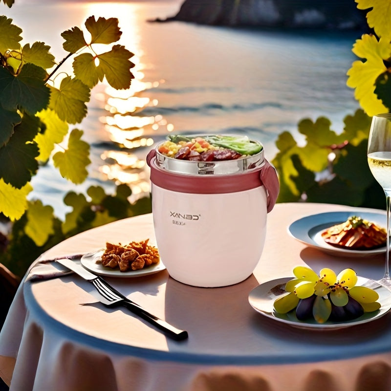 Double-layer vacuum-insulated stainless steel lunch box for hot cold food storage outdoor camping picnics