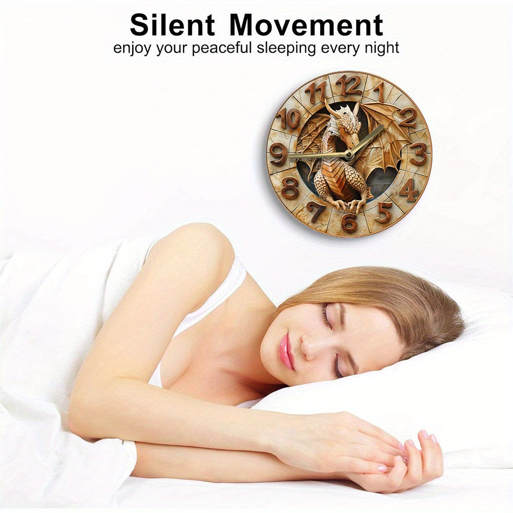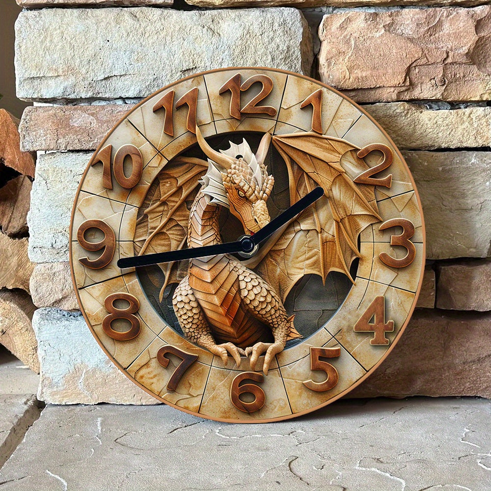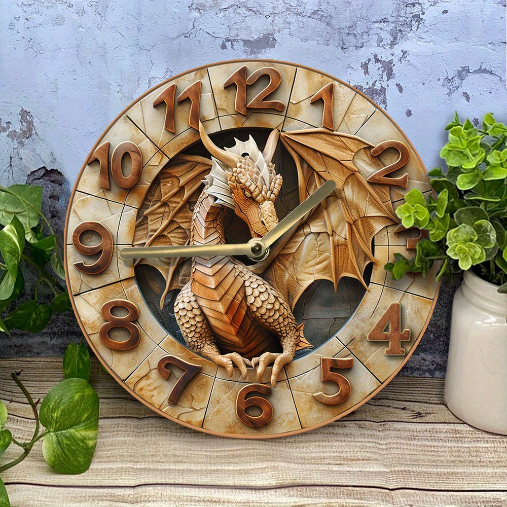 Dragon Wall Clock 20.32cm Aluminum 3D Effects Gold Hands Pet Lover Gift Autumn Decor