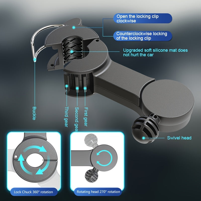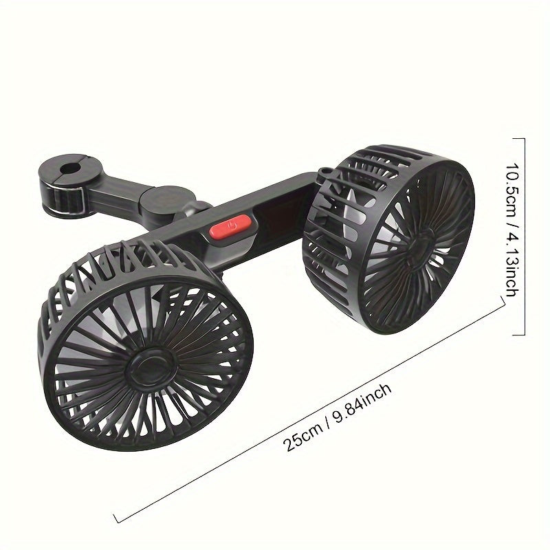 Dual Head USB Car Seat Fan with 360° Rotation, Adjustable Clip for SUVs and RVs