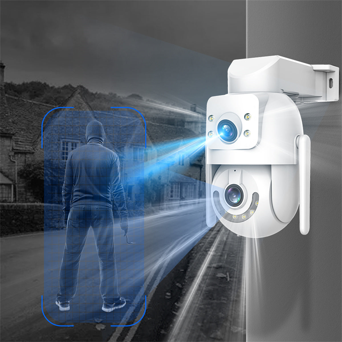 Dual Lens WiFi Security Camera Full HD Pan Tilt Night Vision AI Detection Ethernet USB
