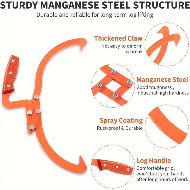 Durable 50.8cm Log Tongs with Anti-Slip Handle for Moving Wood Up to 49.9 KG Orange