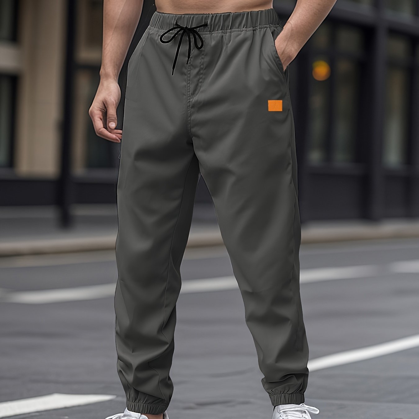 Men's Casual Woven Polyester Drawstring Pants Solid Color Regular Fit All-Season