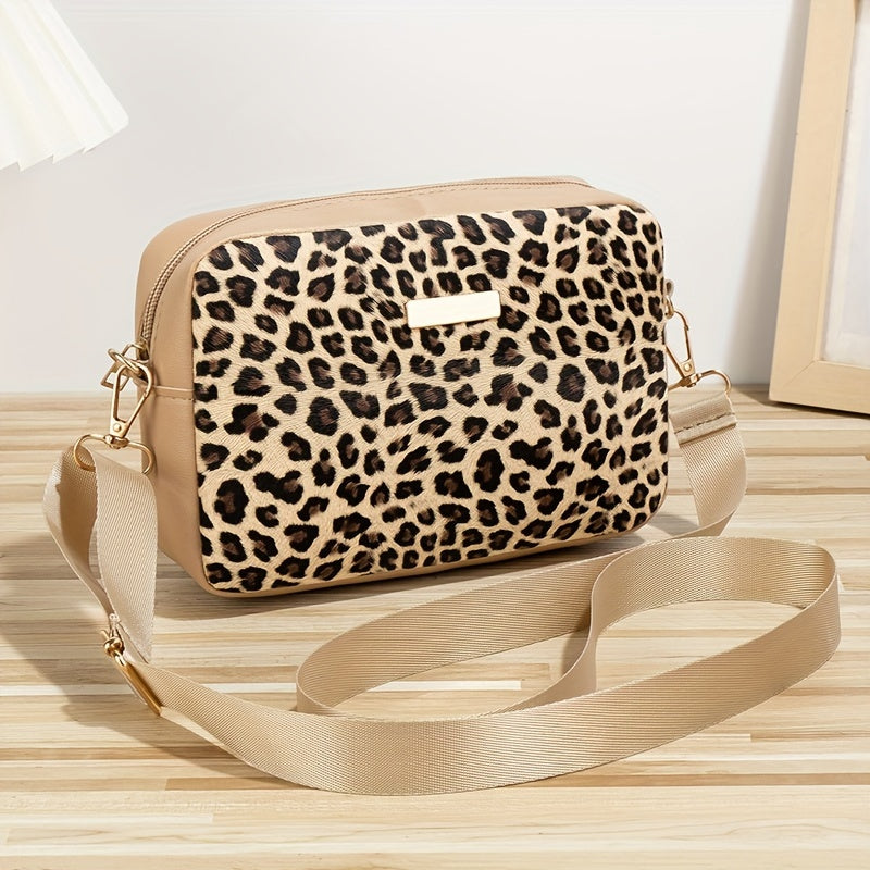 Women's Small Square Shoulder Bag Leopard Print PU Casual Crossbody for Going Out and Office