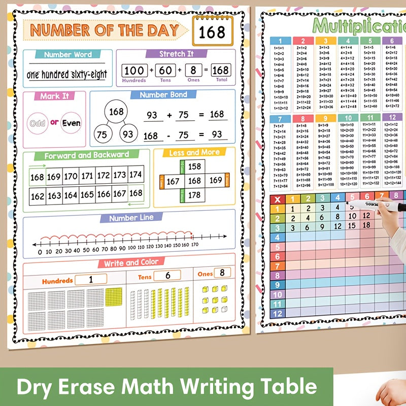 Educational Math Learning Poster Erasable Multiplication Table Number Bond A2 Size