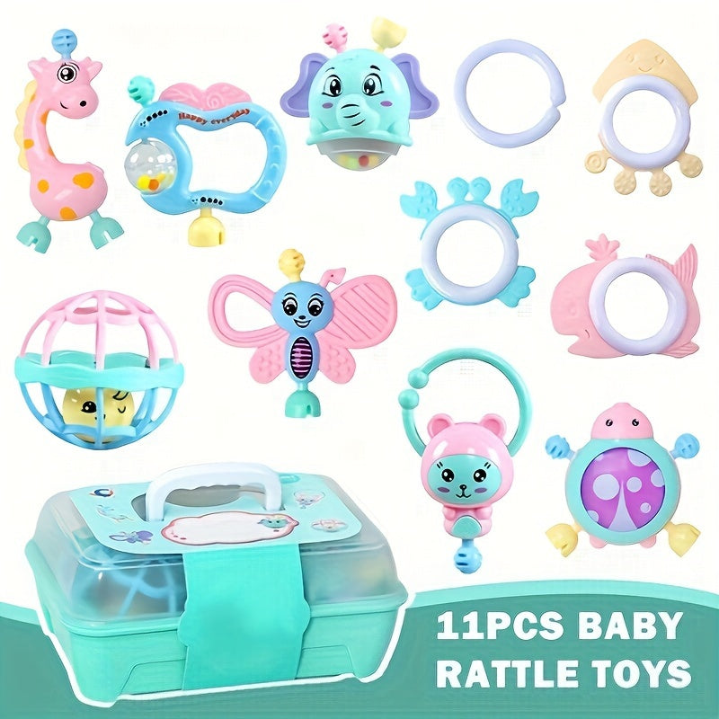 Baby Rattle Toys for 3M+ Children Educational Chewing Set with Storage Box in Mixed Color
