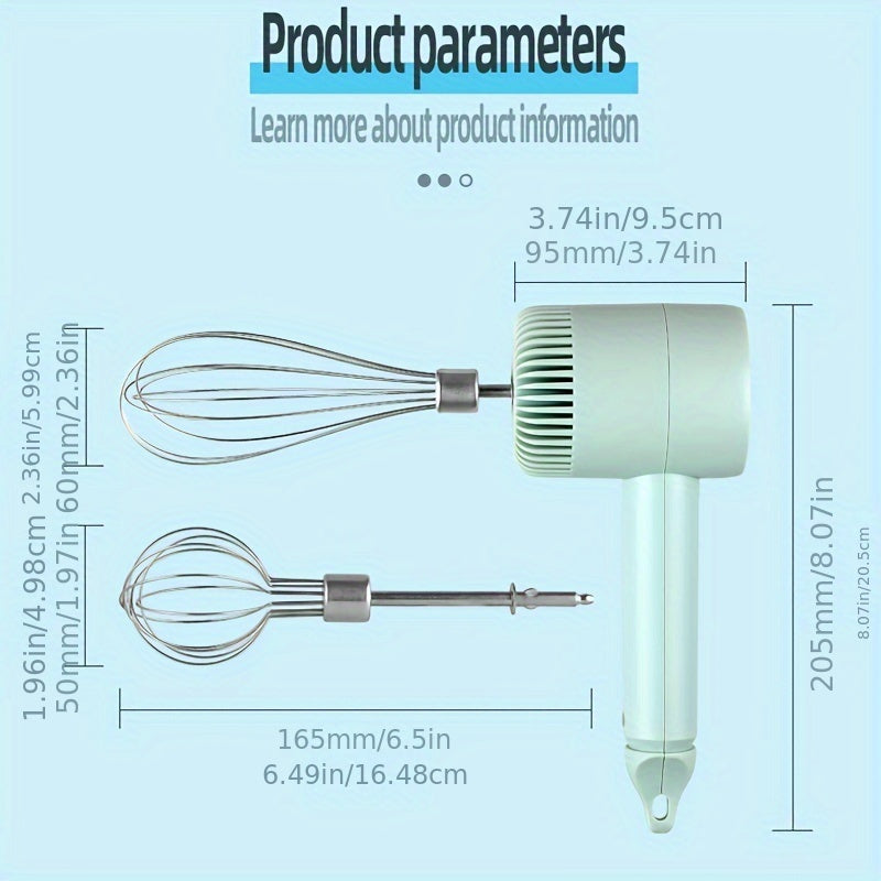 Electric Hand Mixer Stainless Steel Whisk 3-Speed Rechargeable Food Blender