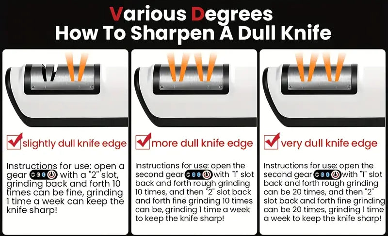 Electric knife sharpener USB charging 2-speed adjustment in silvery white
