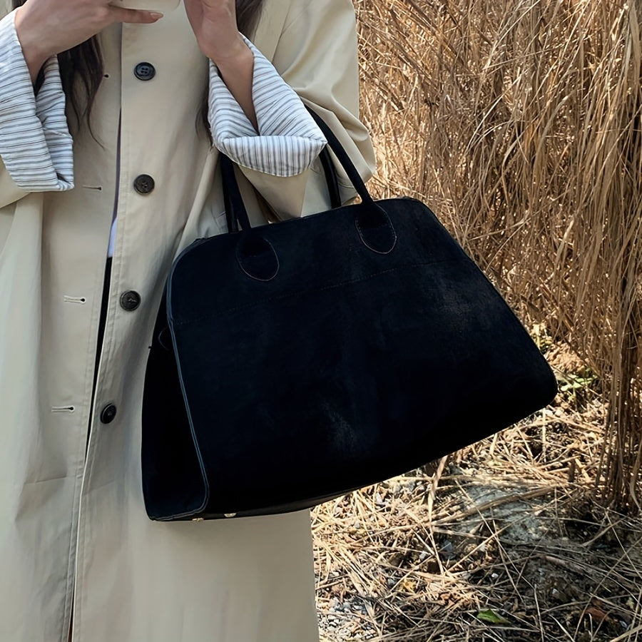Women's Faux Leather Tote Bag with Fixed Shoulder Straps Buckle Closure and Polyester Lining