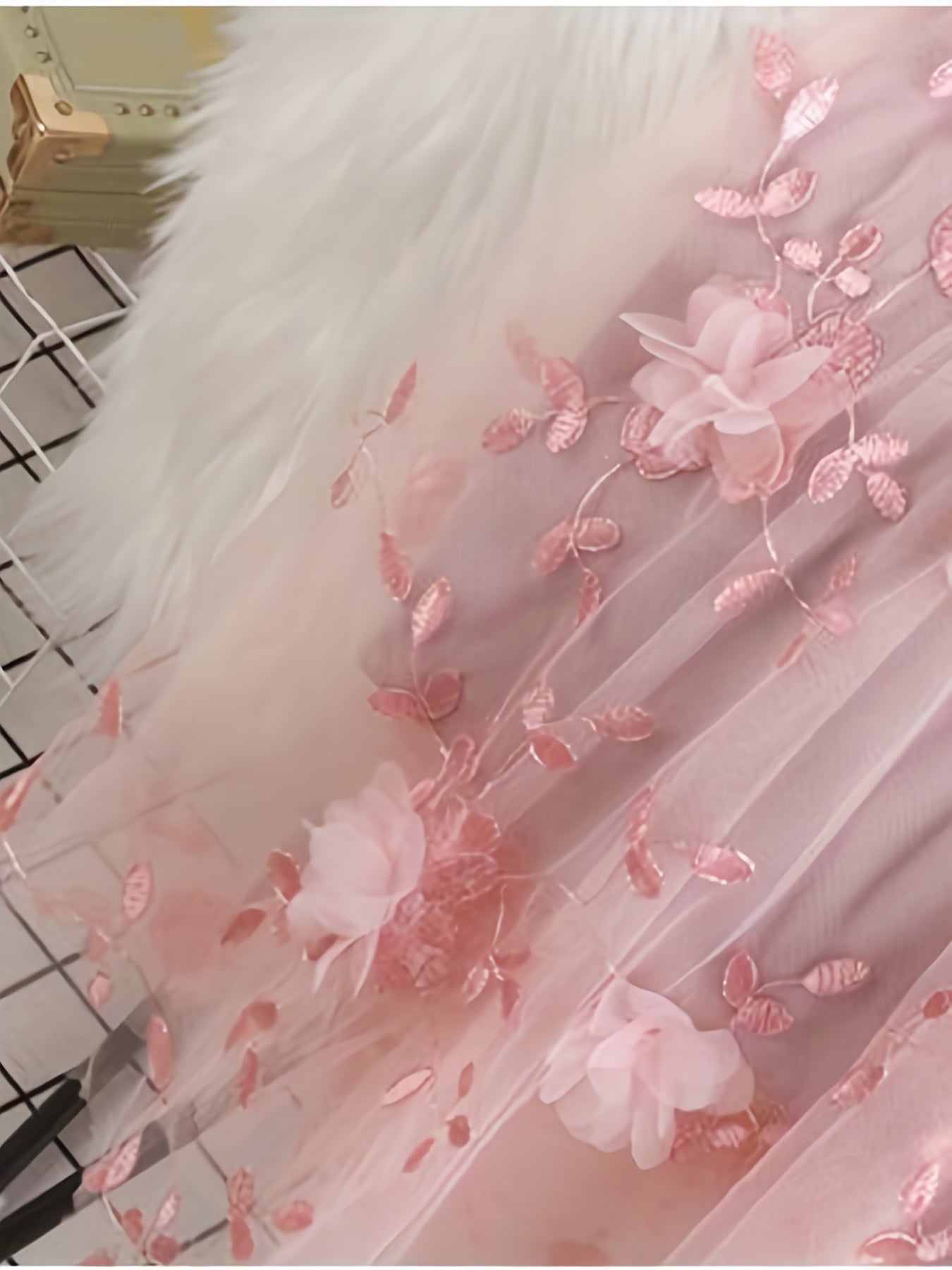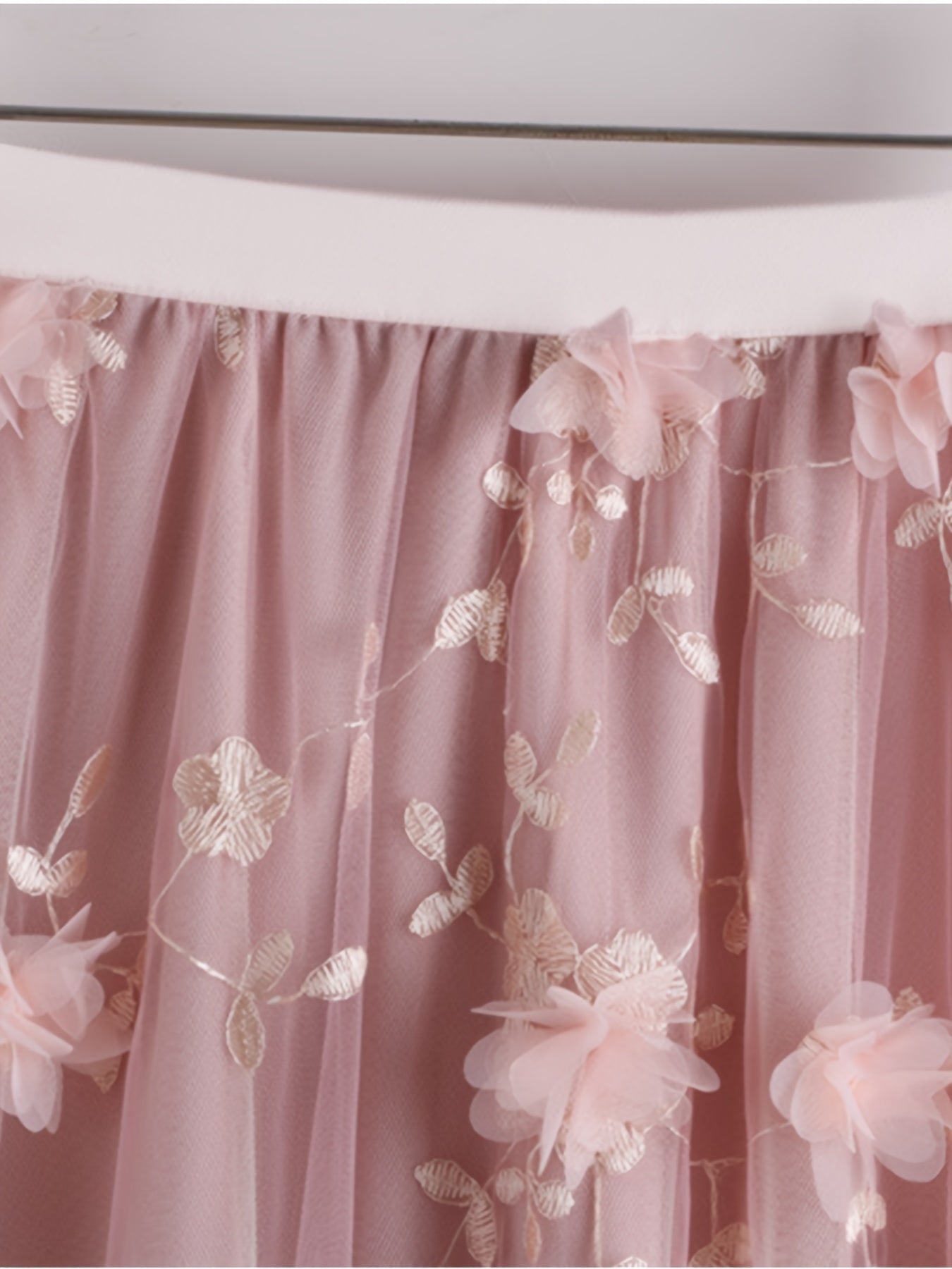 Women's High-Waist A-Line Midi Skirt with Tulle and Floral Embroidery Black Spring Summer Polyester